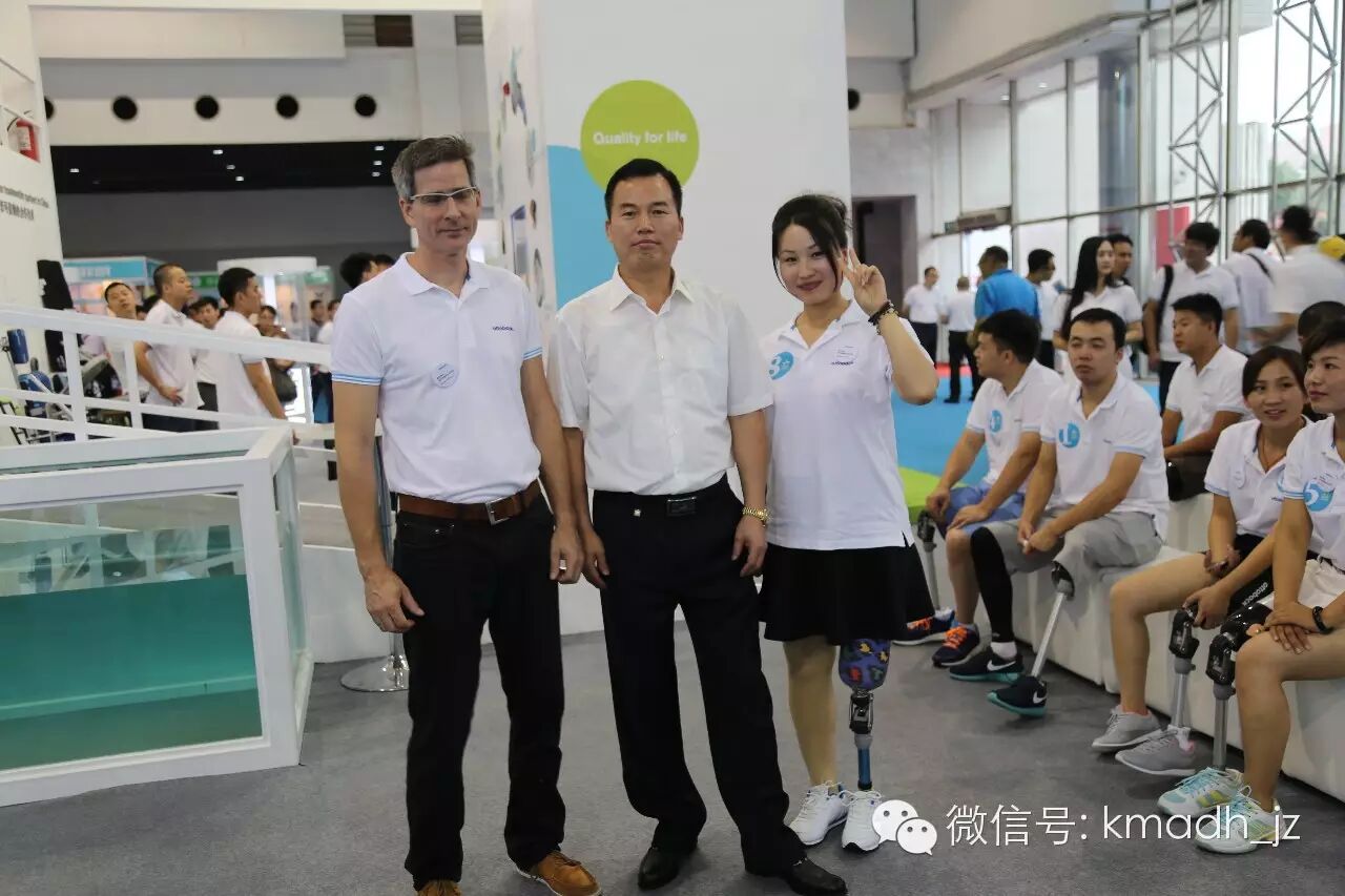 昆明安的好假肢有限公司总经理鄂明选先生、假肢模特轩亚娟与奥托博克技术服务总监乔治.霍夫曼先生合影